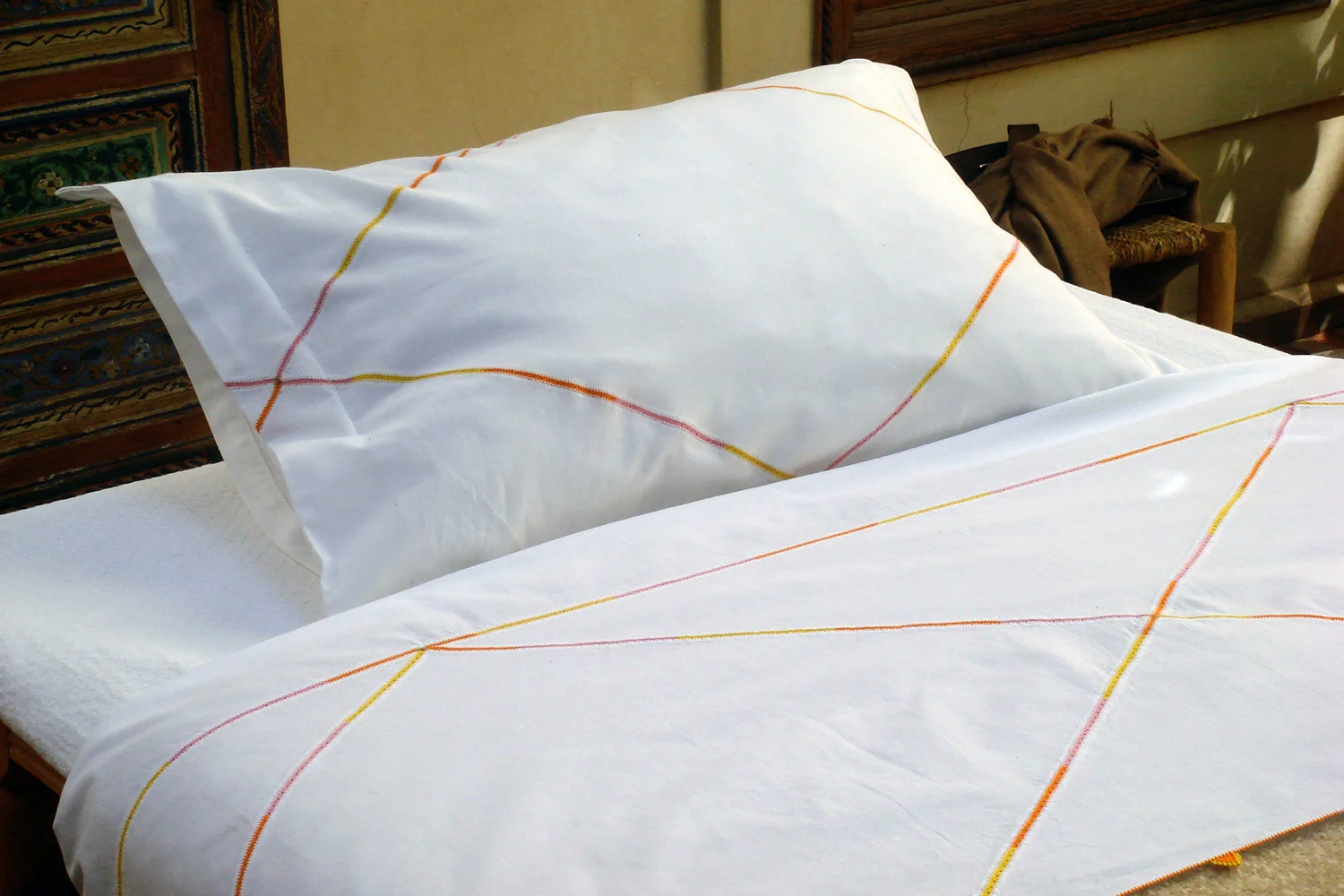 Cotton percale embroidered in Randa technique, available in pure linen Custom orders welcome